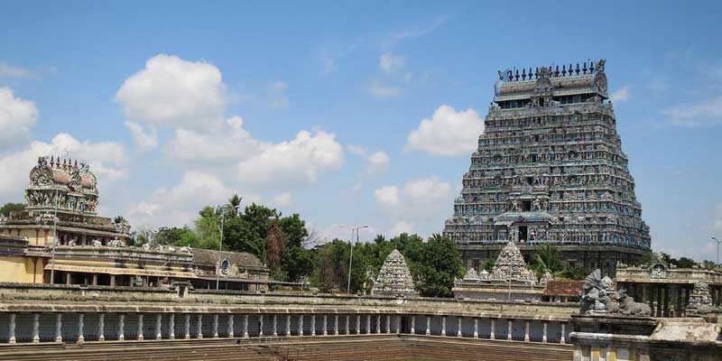 The Nataraja Temple With its ideal location in the heart of the city the Nataraja Temple spreads over an area of 40 acres. It is one of the oldest temples of Tamilnadu. The roof of the temple is coated with mesmerizing gold plates. The presiding deity of the temple is represented by air, one of the five elements of the universe and is known as “Akasa Lingam”.